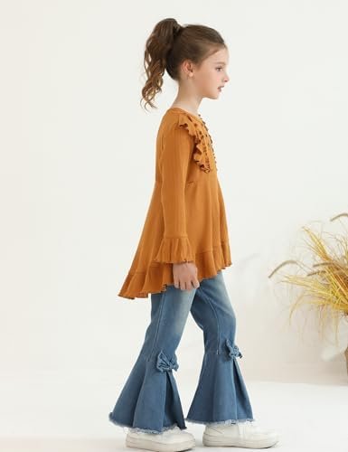 Auiopila Kids Toddler Girl Clothes Solid Color Ruffle Sleeve Top and Flare Jeans Pants 2Pcs Fall Winter Girl Outfits: Clothing, Shoes & Jewelry