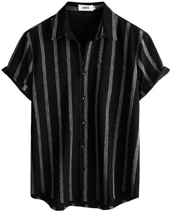 VATPAVE Mens Summer Striped Shirts Button Down Short Sleeve Vintage Beach Hawaiian Shirts with Pocket Large Black Fashion : Clothing, Shoes & Jewelry