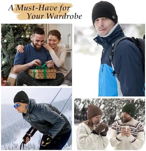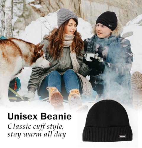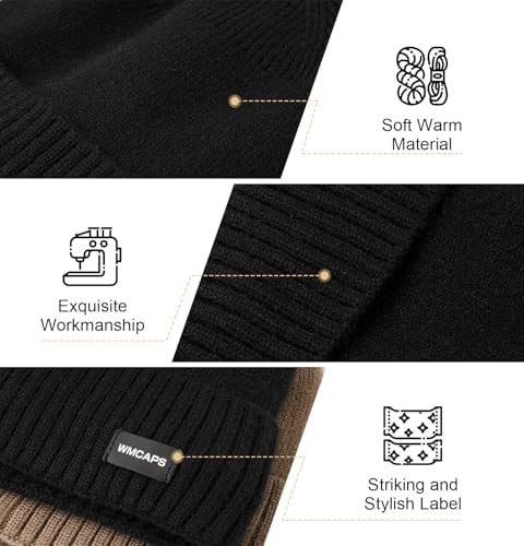 Wmcaps Winter Men Women Fleece Lined Beanie Knitted Hats, Soft Thermal Stocking Skull Caps for Cold Weather, Fashion Headwear for Outdoor (Black) at Amazon Men’s Clothing store